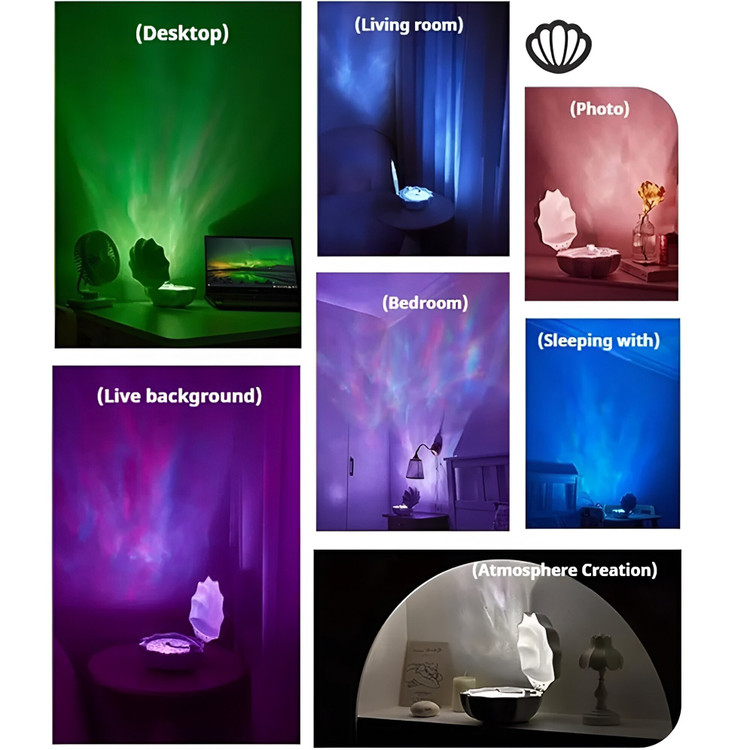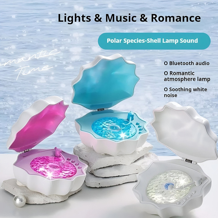 گرامافون صدف اسپیکردار و بلوتوث پروژکتور نوری ۳۶۰ درجه موجود در سه رنگ جذاب کیفیت اصلی ( ارسال فوری به سراسر کشور )