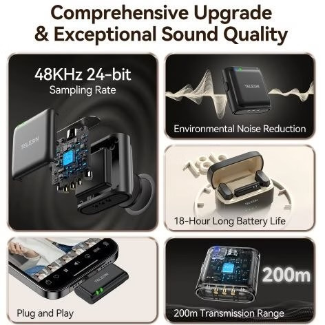 🎤 میکروفن یقهای بیسیم TELESIN | صدایی شفاف، ضبطی حرفهای