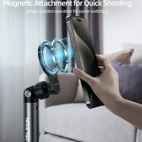 پایه استند مغناطیسی Telesin، گزینهای عالی برای افرادی است که بهدنبال یک استند با ویژگیهای منحصر بهفرد برای ویدئو یا استریم زنده هستند. این استند طراحی منحصر بهفردی دارد و میتواند نیازهای مختلف کاربری را بهخوبی برطرف کند. در ادامه، به ویژگیها و مزایای این استند مغناطیسی اشاره میکنیم: