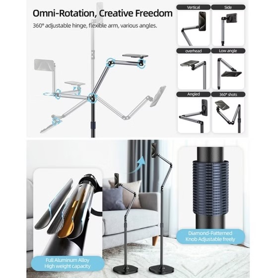 این استند مناسب برای استفاده در ویدئو کنفرانسها، استریمهای زنده، عکاسی، یا حتی بهعنوان یک ایستاده برای تماشای فیلمها و محتوای ویدیویی است. این استند میتواند برای کاربران یوتیوب، اینستاگرام، TikTok یا هر شخصی که بهدنبال ضبط ویدیو باشد، مفید باشد.
