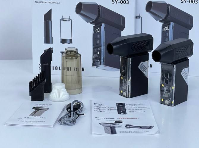 دمنده و مکنده قابل شارژ مدل SY-003 است — دستگاهی چندکاره برای تمیز کردن گرد و غبار، مخصوصاً برای وسایل الکترونیکی مانند کیس کامپیوتر، کیبورد، لپتاپ، خودرو و لوازم خانگی ظریف.
