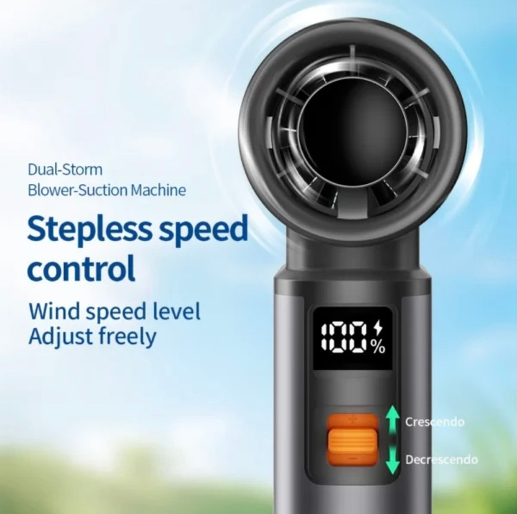 این جت فن نه تنها به عنوان یک دمنده قدرتمند عمل میکند، بلکه قابلیت تبدیل شدن به یک مکنده قوی را نیز دارد. با استفاده از لوازم جانبی مخصوص، این دستگاه میتواند به راحتی گرد و غبار و ذرات ریز را از سطوح مختلف مکش کرده و مانند یک جارو عمل کند. این ویژگی به خصوص برای جارو کردن داخل ماشین، میزها، و سطوح دیگر بسیار کاربردی است. از جارو کردن گرد و غبار از داخل خودرو گرفته تا پاکسازی مبلمان، این دستگاه میتواند تمامی نیازهای شما را پوشش دهد.