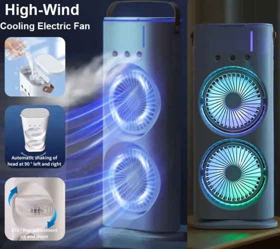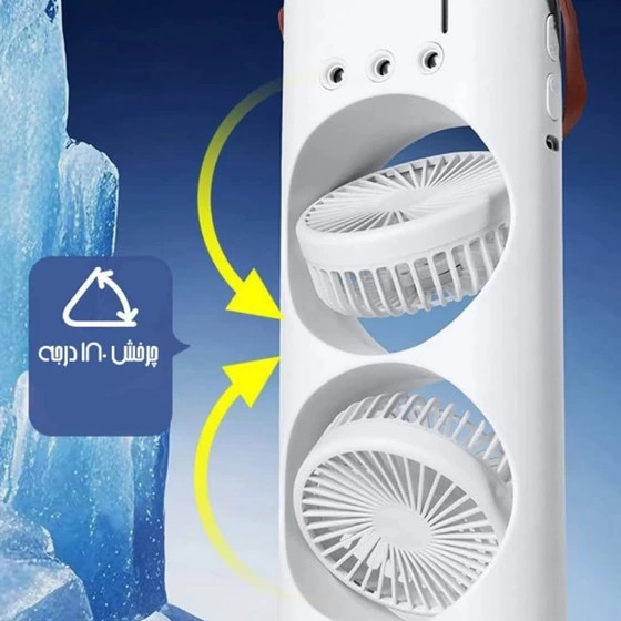 پنکه رومیزی مه پاش دوفن شارژی با ریموت کنترل – خنکای بیوقفه، حتی در اوج گرما! 🌬️💧