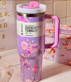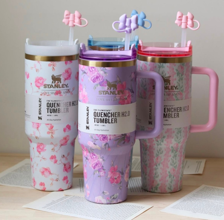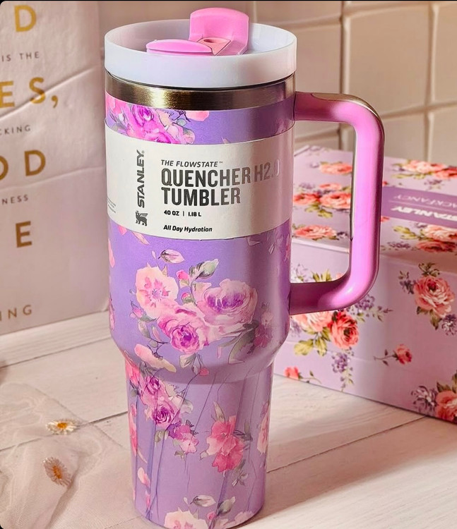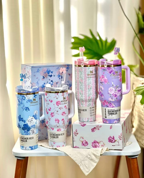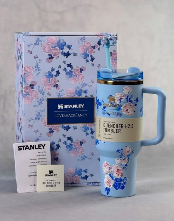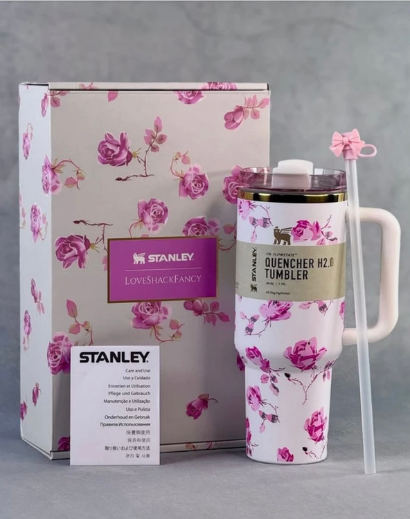 تراول ماگ استنلی طرح گل Love shake fancyتامبلر استنلی گلدار مستر کوالیتی باکس هدیه( ارسال فوری و با پیک برای تهران )