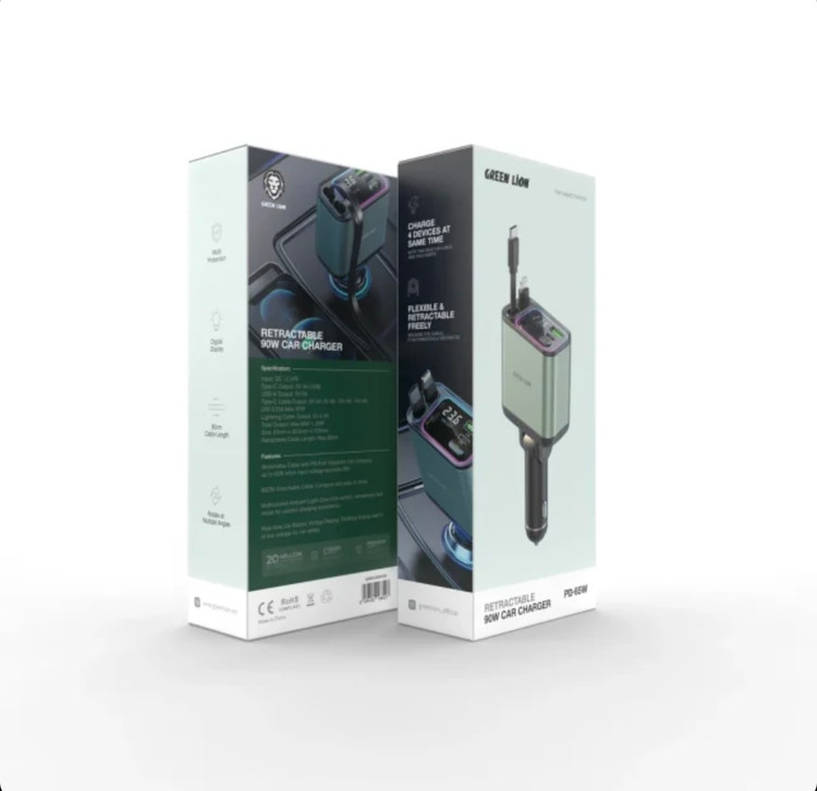 شارژر فندکی گرین لاین Retractable 90W Car Charger PD 65W