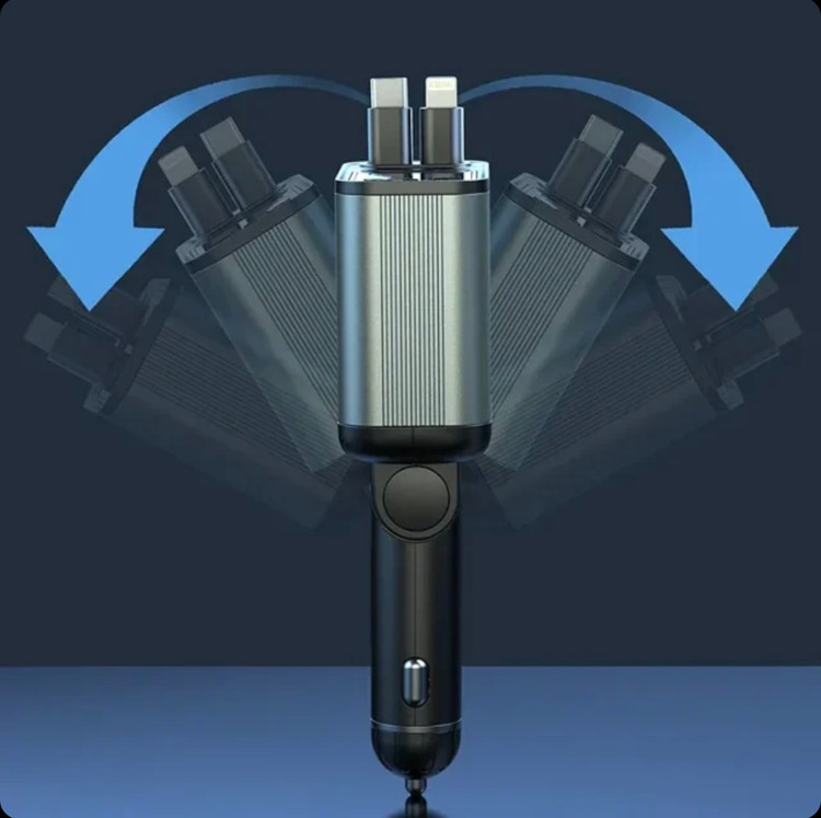 شارژر فندکی ماشین 90 وات با کابل جمع شونده گرین لاین با ۱۲ ماه گارانتی تعویض