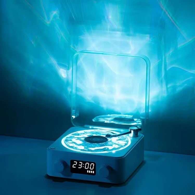 این محصول جذاب ترکیبی از گرامافون های قدیمی با اسپیکر بلوتوثی امروزی هستش، و یه دکوری لوکس و مینیمال و چراغ خواب که امواج اقیانوس رو شبیه سازی میکنه.