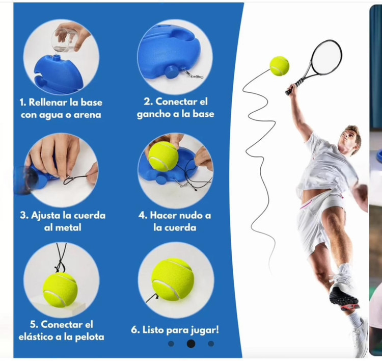 این ست شامل یک توپ تنیس با طناب، یک پایه مقاوم و مکانیزم برگشت توپ است.