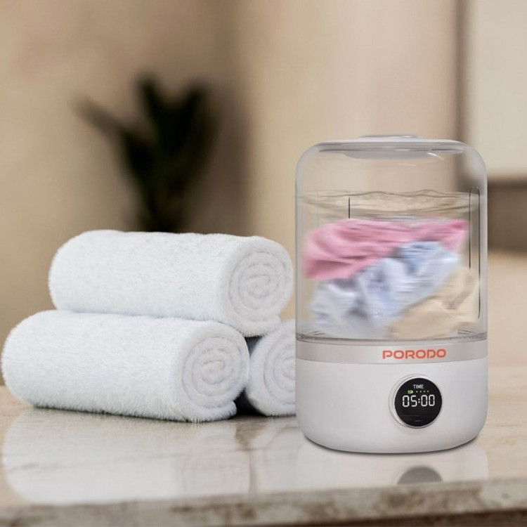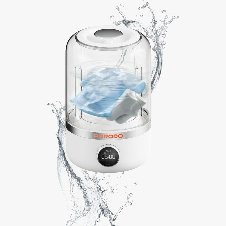 مینی واش Porodo LifeStyle یک ماشین لباسشویی قابل حمل ، جمع و جور و با کاربری آسان است که برای فضاهای کوچک مانند آپارتمان ها ، خوابگاه ها و ماشین های RV ( کاروان یا خودروهای تفریحی ) مناسب است. با حداکثر ظرفیت بار 1.5 کیلوگرم ، برای شستن لباس های کوچک مانند لباس های زیر، جوراب و لباس های ظریف ایده آل است.